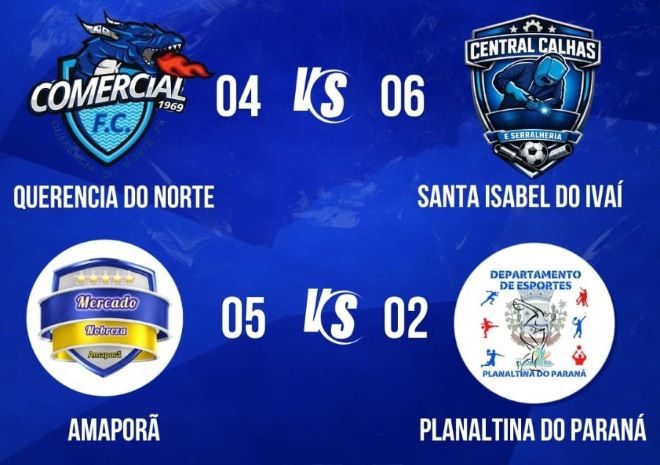 Central Calhas/Santa Isabel do Ivaí venceu a equipe Comercial FC/Querência do Norte por 6 a 4. Gols de Wesley (3), Marlos, Carlos e Emerson (Central), Guilherme, Gustavo (2) e Kauã (Comercial).