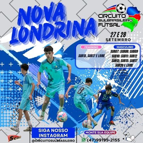 Nova Londrina sediará nos dias 27 e 28 de setembro o Circuito Sul Brasileiro de Futsal, em 12 categorias.