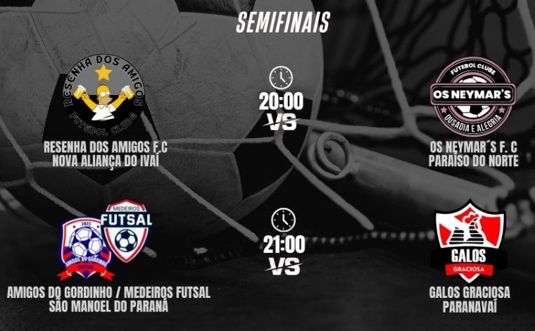 Jogam em busca de vaga na final às 20 horas – Os Neymar´s/Paraíso do Norte x Resenha dos Amigos/Nova Aliança do Ivaí.