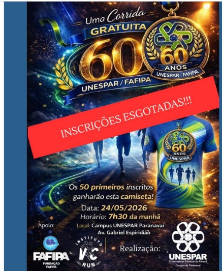 Programada para o dia 24 de maio em Paranavaí, a Corrida Unespar em comemoração aos 60 anos da Unespar/Fafipa já esgotou o limite de inscrições.