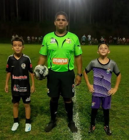 Na foto, Rafael, o árbitro Alex e Diogo no Copel Clube de Paranavaí.