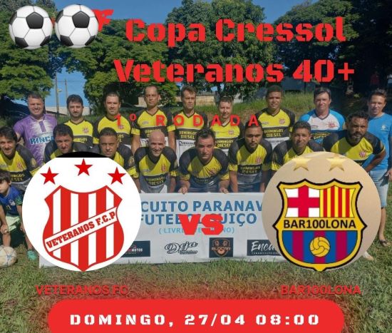 Campo 1 às 8h30 – Amigos do Padeiro x Amigos Veteranos Tamboara. Às 10 horas – Veteranos/São Tomé x Só Velhinhos/Paranavaí.
