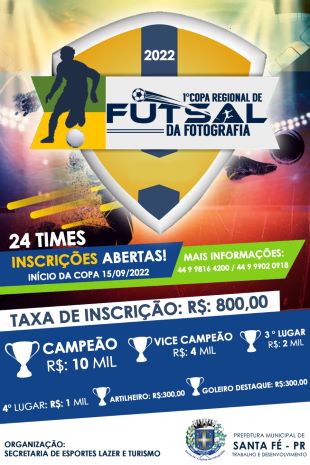 Com previsão de início nesse mês em Santa Fé, a 1ª edição da Copa da Fotografia de Futsal Regional conta com 19 equipes inscritas, restam 5 vagas.