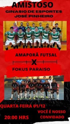 Hoje, 1º, tem amistoso de Futsal a partir das 20 horas em Amaporã, no Ginásio de Esportes José Pinheiro contra a equipe Fokus Paraíso, de Paraíso do Norte.