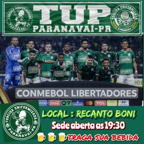 Nessa quarta-feira, 24 de abril, tem seis jogos da Copa Liberdadores da América, o Palmeiras enfrenta no Equador, o Independiente del Valle, e a sede da Torcida Uniformizada Palmeiras de Paranavaí no Recanto Boni estará aberta a partir das 19h30.